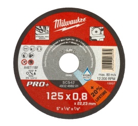 Disco fino de corte para metal PRO+ Milwaukee - SCS 42/125x0,8x22mmMILWAUKEEDisponible