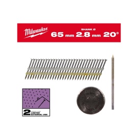 Clavos Milwaukee - 20° cabeza redonda, 65 mm (2000uds)MILWAUKEEDisponible