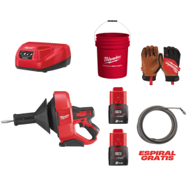 Desatascadora M12BDC8-202C M12™ + GUANTES DE PIEL HÍBR IDOS L/9 - 1 PAR + Espiral de 8mm x 7,6m con cabeza tipo barrena y pivotanteMILWAUKEEDisponible