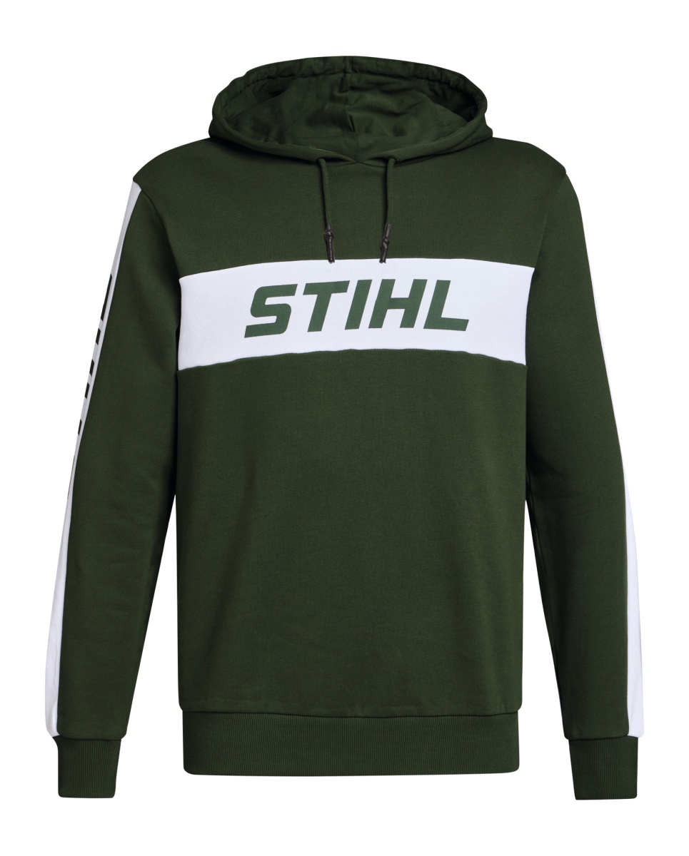 El logotipo de STIHL verde destaca sobre la amplia franja blanca en el pecho y los brazos. De su comodidad se ocupa la felpa rugosa del interior, 100 % algodón.