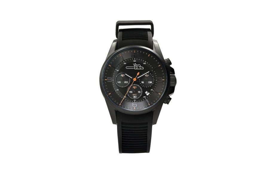 El modelo con mecanismo de cuarzo y un vidrio de Crystex endurecido presenta un fondo atornillado y una resistencia al agua de hasta 10 atm. La correa de silicona negra de alta calidad con hebilla remarca el gran aspecto deportivo y elegante de este reloj."