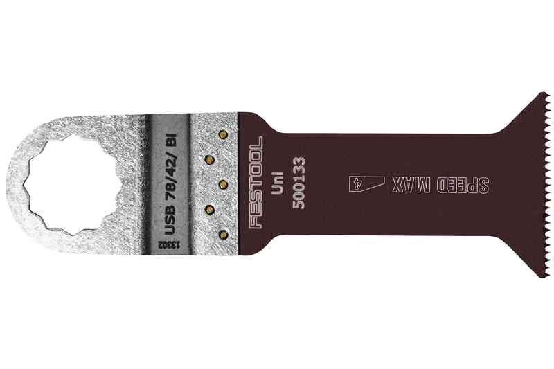 La hoja de serrar multiherramienta de bimetal con dentado universal. Versatilidad de aplicación en madera, madera revestida, lacada, material compuesto, PRFV, cartón yeso, metales no férreos y plásticos. Velocidad de corte óptima, alta calidad de corte y larga durabilidad. Robusta incluso contra los clavos atrapados en la madera.