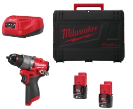 Taladro percutor subcompacto Milwaukee - M12 FPD2-202X + Premium Drill Set 2-8pc-EMEA + BROCAS PARA METAL SHOCKWAVE™, 10 PC SET + Batería, M12 B2