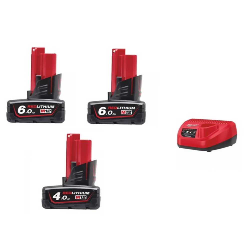 Kit de baterías y cargador Milwaukee - M12 NRGO1-643 + Baterías, M12 B6 (2uds) + Batería, M12 B4 + Cargador, C12 C