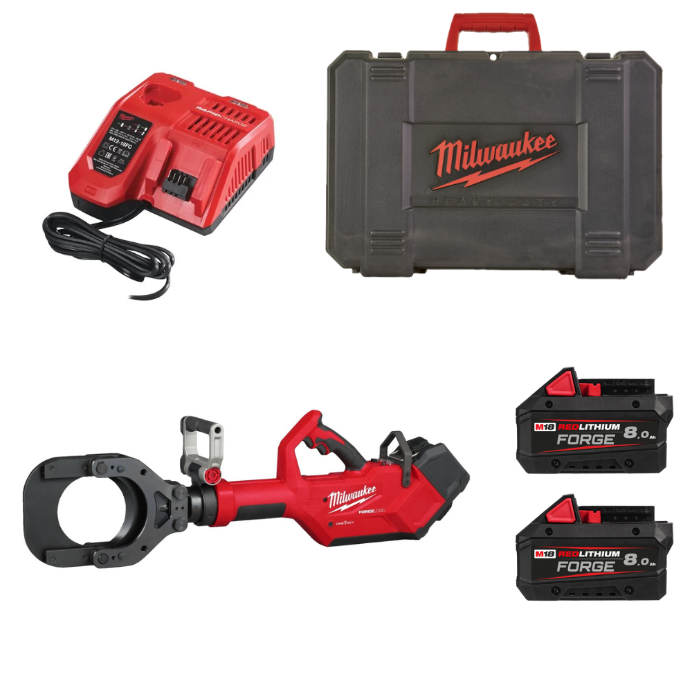 Cortadora de cable hidráulica M18™ ONE-KEY™ FORCE LOGIC™, 125mm M18 HCC125-801C es una herramienta profesional diseñada para ofrecer un rendimiento excepcional en el corte de cables de gran diámetro. Equipada con las tecnologías FORCE LOGIC™ y ONE-KEY™, esta cortadora combina un motor sin escobillas, electrónica REDLINK™ y conectividad inalámbrica para proporcionar potencia, precisión y seguridad. Ideal para cortes de cables de aluminio, cobre y acero de hasta 125 mm, esta herramienta es perfecta para profesionales que trabajan en entornos exigentes como zanjas o instalaciones de alta tensión.