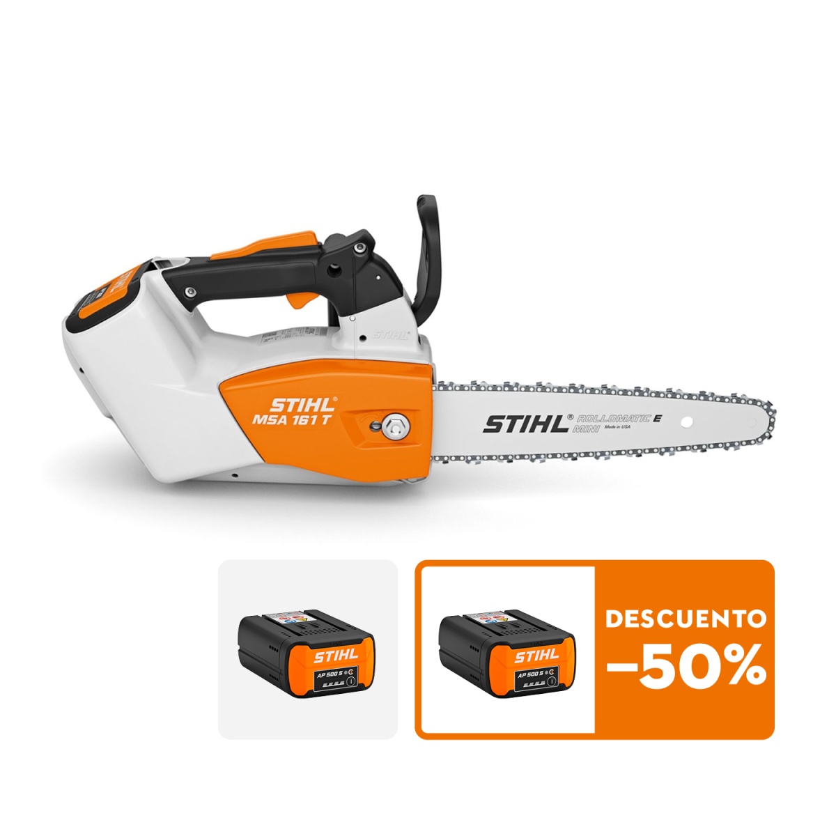 Motosierra de batería MSA 161 T 1/4"PM3, LO1, 25 cm + Batería STIHL - AP 500 S + (Batería STIHL AP 500 S - 50%)