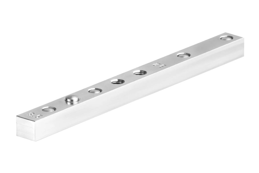 Estos topes longitudinales adicionales completan el set LR 32, por ejemplo, cuando es necesario instalar un segundo riel de guía de otro tamaño
