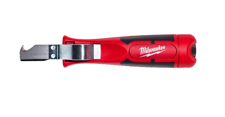 Cuchilla tipo gancho integrada para mayor versatilidad. La tapa de seguridad de la cuchilla reduce el riesgo de lesiones