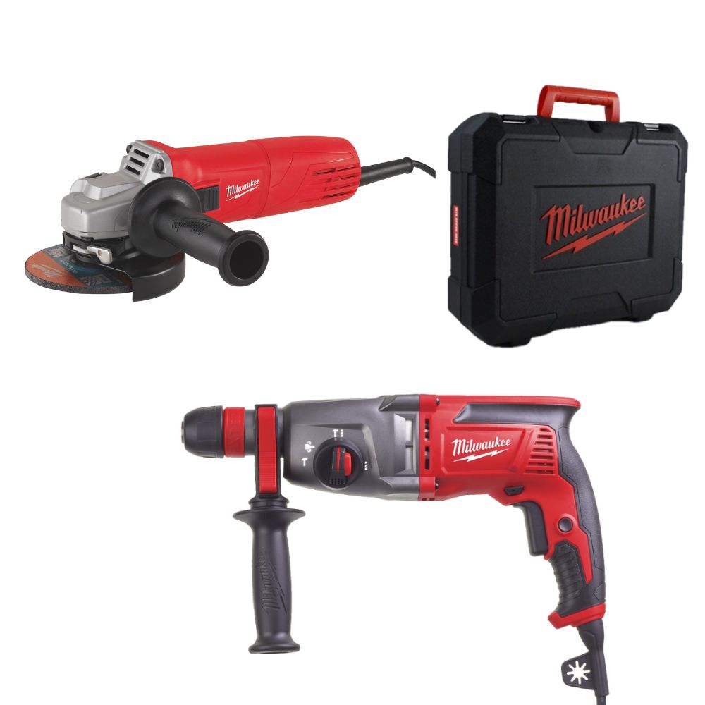 Martillo combinado Milwaukee - PH 26 TX, SDS-Plus de 800W FIXTEC + Amoladora angular, AG10-125EK de 1000W