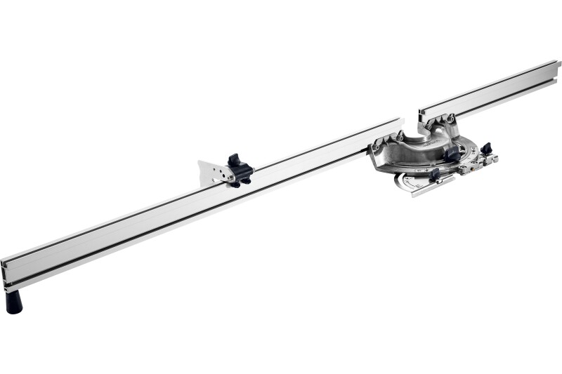 Con el tope angular montado en el riel de guía y una sierra para material aislante a batería pueden cortarse materiales aislantes flexibles con una gran precisión de repetición. El tope orientable puede regularse a ambos lados hasta 47°. Con la práctica lengüeta de tope pueden ajustarse rápidamente unas dimensiones de repetición de hasta 90 cm en la escala de la regleta de guiado